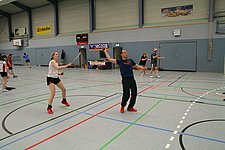 Mit Musik wird meist ein Schleifchenturnier gespielt. Das heißt in jeder Runde bekommt jeder einen neuen Partner und auch neue Gegner. Teilnehmen kann jeder der weiß, wie die Regeln von Badminton sind. Der Spaß steht bei diesem Turnier im Vordergrund!